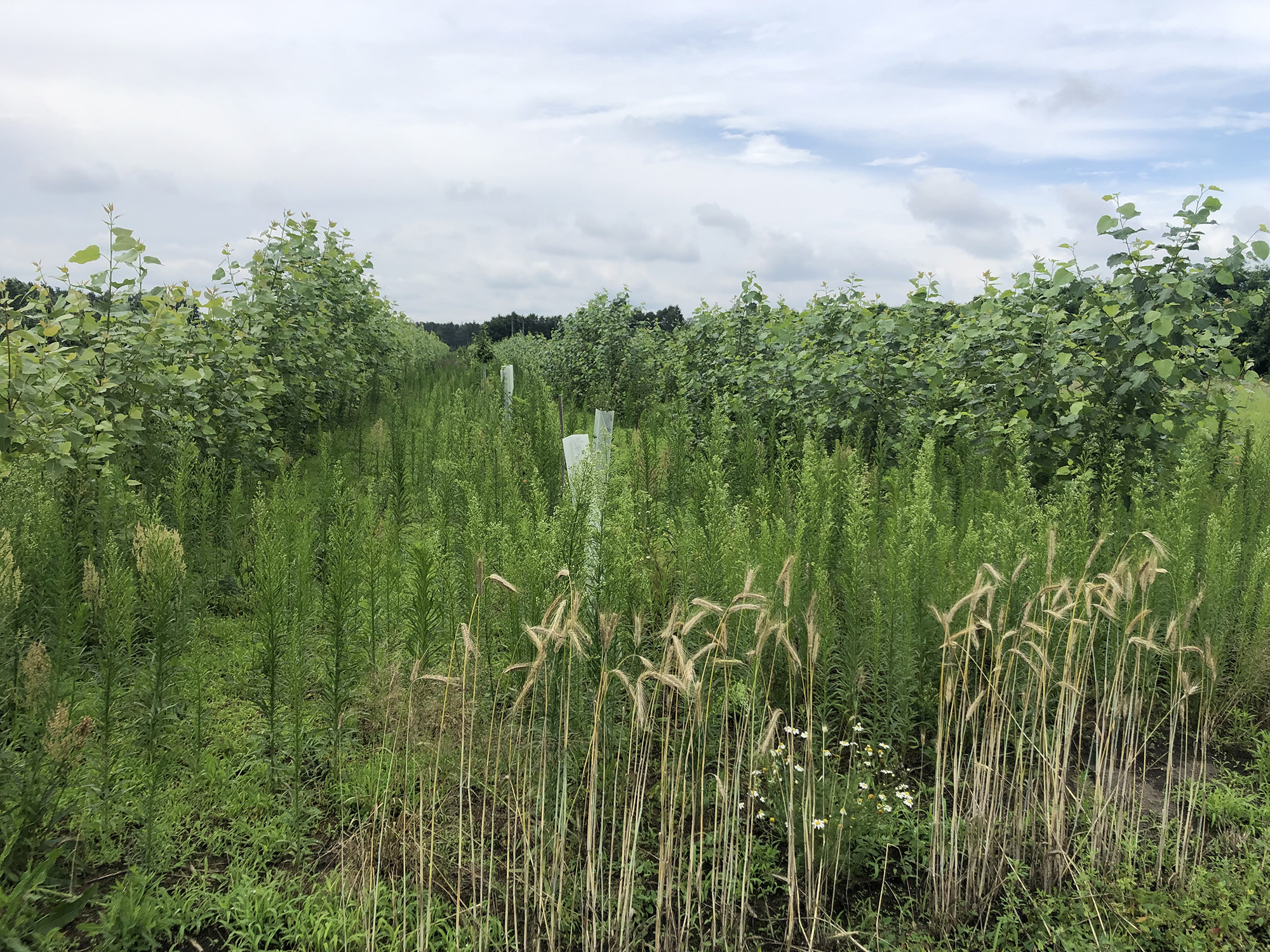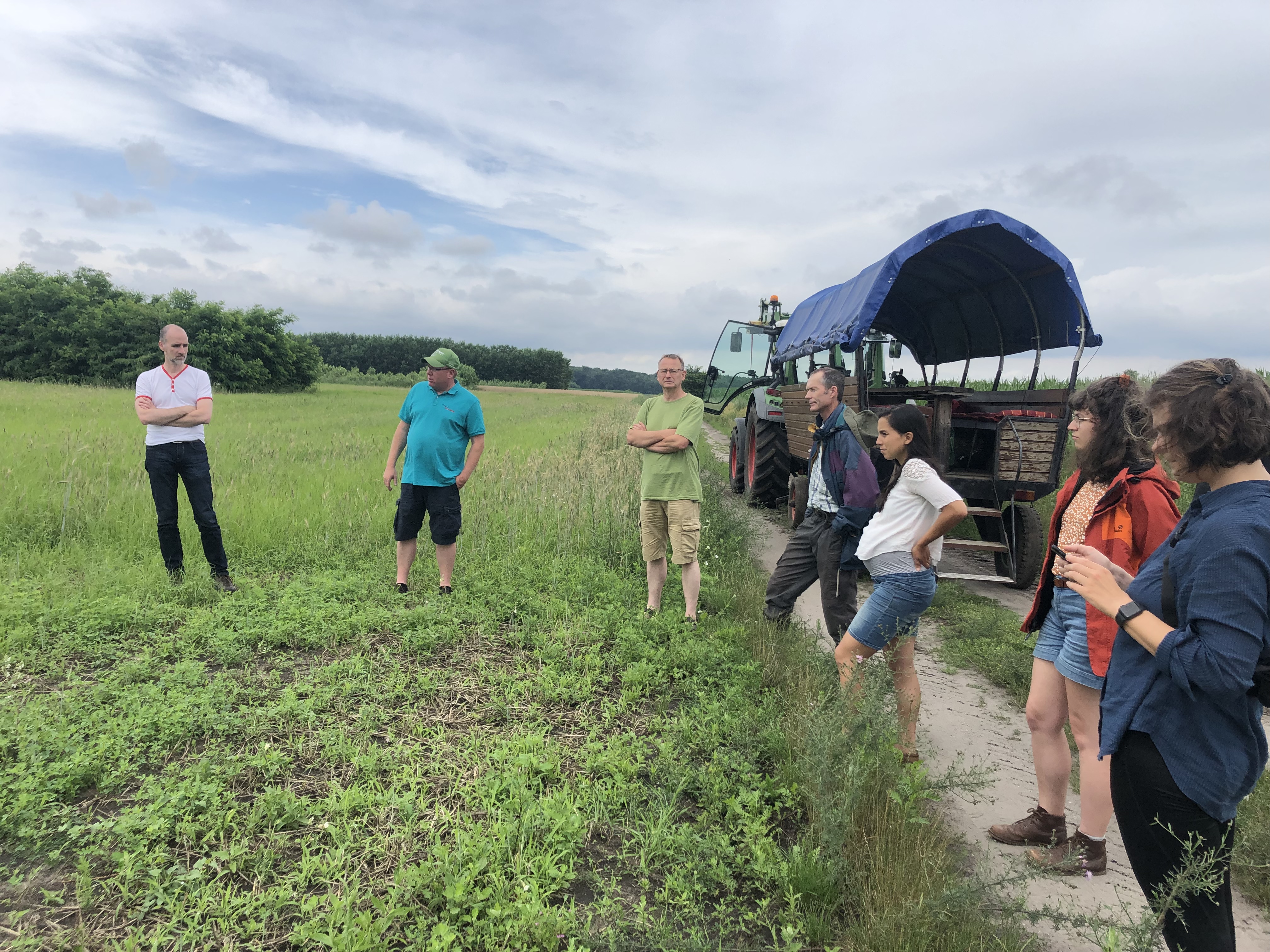 The OLGA project meeting on 14th of July 2021 took place on Thomas Domin's farm in Peickwitz near Senftenberg. In the morning, we visited the agroforestry areas and talked about the diverse ecosystem services that an agroforestry system can provide when appropriately designed. The rows of fast-growing woody plants here in Peickwitz were planted primarily because of the locally prevailing wind erosion. Poplar, willow & co. are lined up in alternation with cereals such as teff or rye. They protect the soil from erosion, bind carbon and can serve for the production of wood biomass and fruits (e.g. rock pear or chestnut). There was also a lot of talk about new marketing strategies that take more account of the land use concept of agroforestry and communicate it to society, such as through "agroforestry eggs", etc.